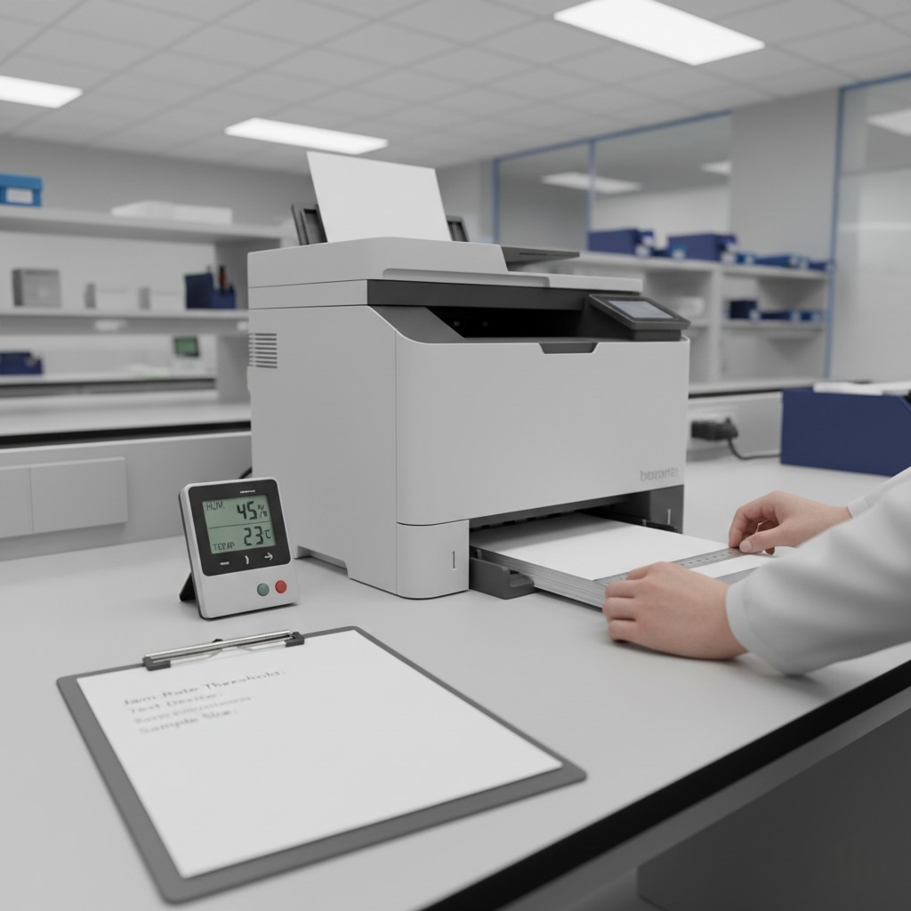 Define jam-rate thresholds (e.g., jams per 10,000 sheets) and specify the test conditions, including device type, environment, and document profile. Describe the sampling plan for inbound QC, lot traceability requirements, and the non-conformance workflow. Establish the replacement SLA for damaged or defective goods.