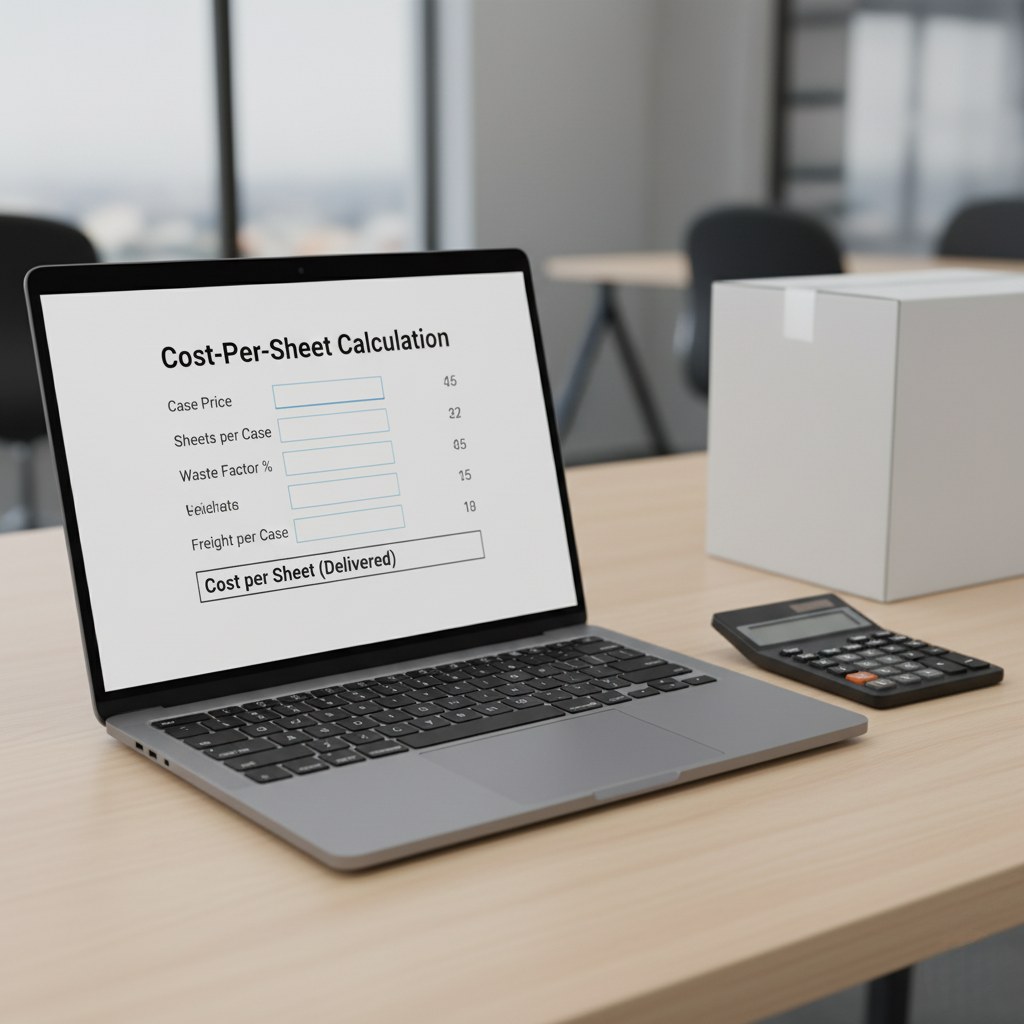 Cost-per-sheet is a simple but powerful equalizer. Ask vendors to express pricing in cost-per-sheet after freight and waste factors. The calculation below can be pasted into your RFP: